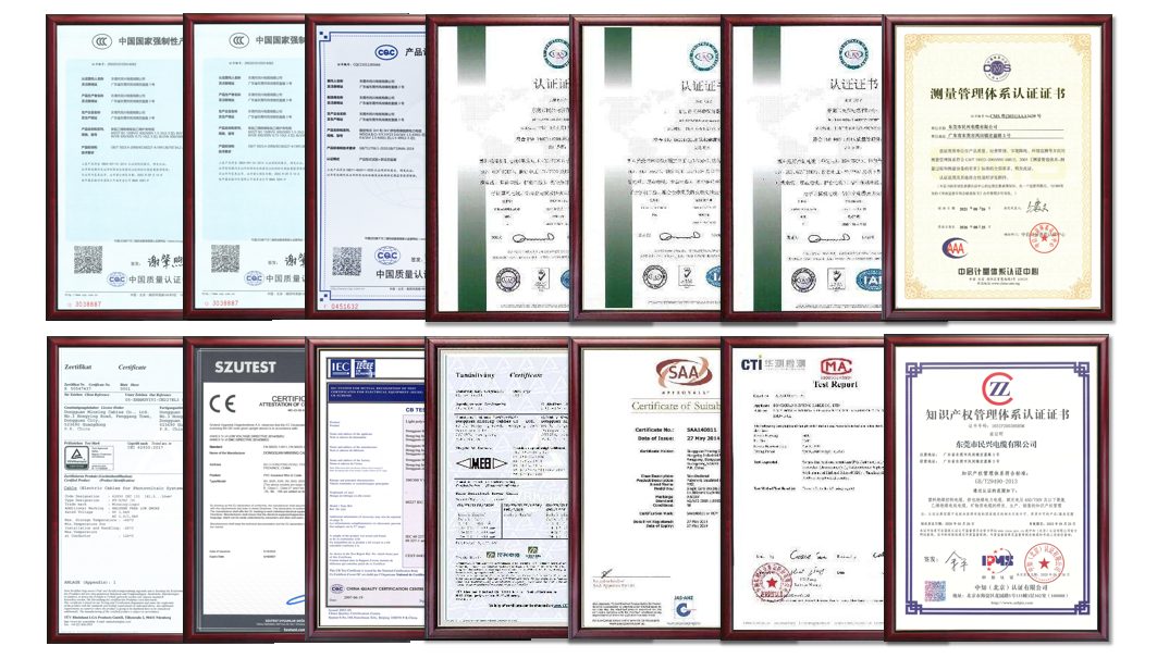 巅峰国际坚持自主研发,重视质量管理和售后服务体系建设,经过多年的努力和不断改进,建立了一套科学规范、资质认证齐全的质量管控体系和售后服务系统,为打造高品质线缆奠定坚实基础。拥有:ISO质量管理体系认证、国家CCC认证、中国质量认证中心CQC认证、国际IEC认证、欧盟CE认证、澳大利亚SAA认证、德国莱茵TUV认证、欧盟RoHS环保检测认证等;建立严格完善的来料检测系统,严苛甄选原材料,从源头上保证产品的高端品质;启用QMS质量管理系统、全自动化机械手臂等,实现智能化、精细化、标准化生产,提高生产制造质量水平。